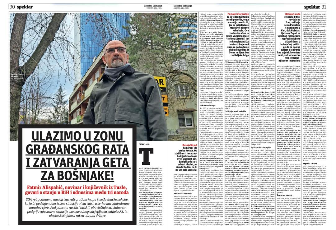 Intervju za “Slobodnu Dalmaciju”: Ulazimo u zonu građanskog rata i zatvaranja geta za Bošnjake